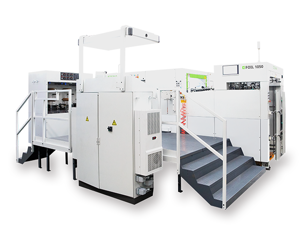 整機外形尺寸 | 7075 × 6550 × 2235 mm (長 × 寬 × 高)(包含踏腳臺、預堆紙軌道及放箔系統接載臺車) |